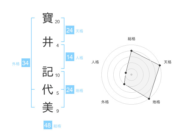 寶井 記代美さんを姓名の画数から五運を鑑定