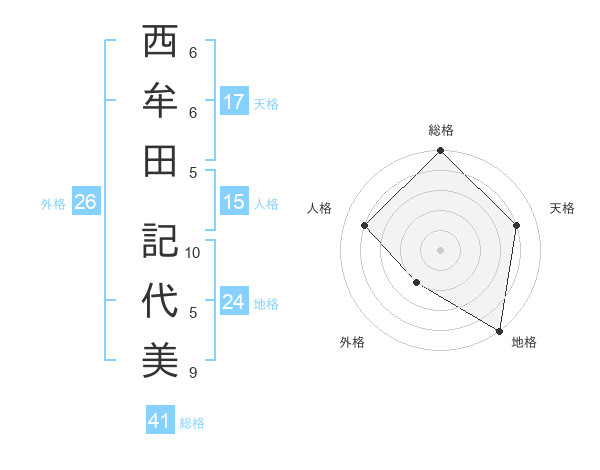 西牟田 記代美さんを姓名の画数から五運を鑑定