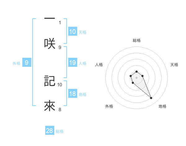 一咲 記來さんの総格は28画の1点!