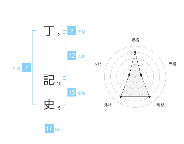 丁 記史さんの総格は17画の4点!