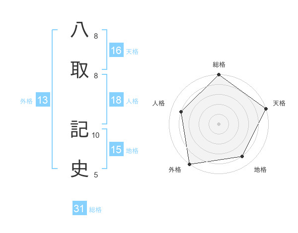 八取 記史さんの外格は13画の5点!
