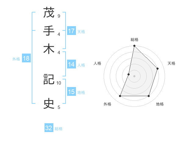 茂手木 記史さんの総格は32画の5点!