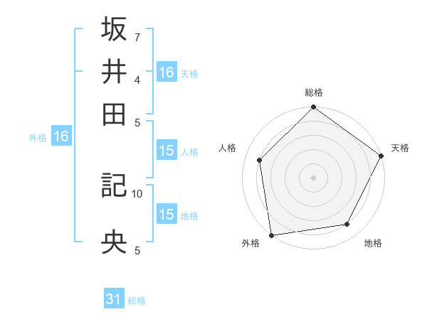 坂井田 記央さんの総格は31画の5点!
