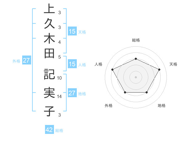 上久木田 記実子さんを姓名の画数から五運を鑑定