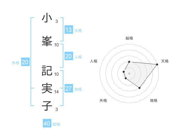 小峯 記実子さんを姓名の画数から五運を鑑定