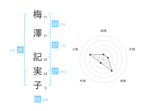 梅澤 記実子さんを姓名の画数から五運を鑑定