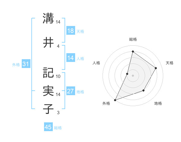 溝井 記実子さんの天格は18画の4点!