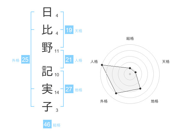 日比野 記実子さんを姓名の画数から五運を鑑定