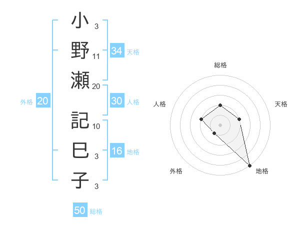 小野瀬 記巳子さんを姓名の画数から五運を鑑定