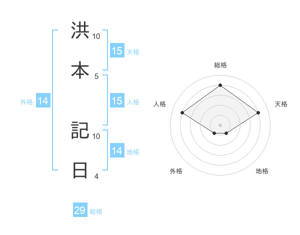 洪本 記日さんの総格は29画の4点!
