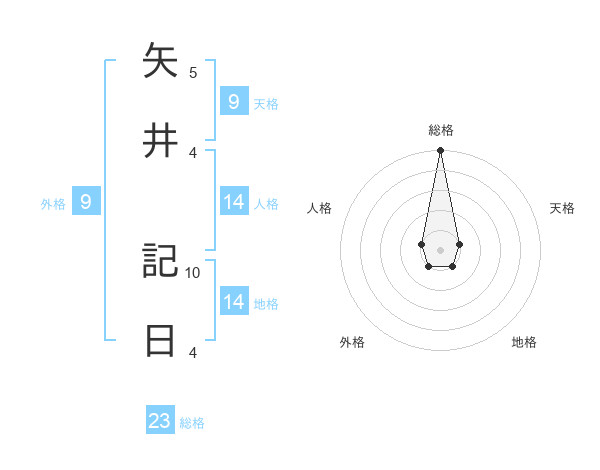 矢井 記日さんの総格は23画の5点!