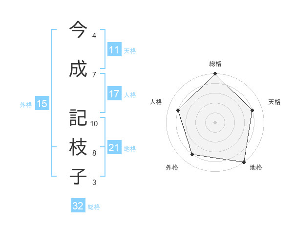 今成 記枝子さんの地格は21画の5点!