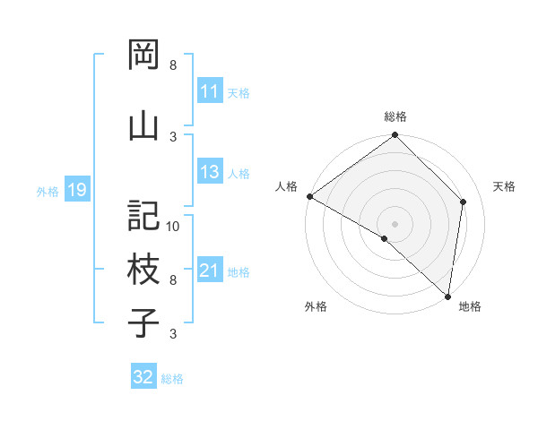 岡山 記枝子さんを姓名の画数から五運を鑑定