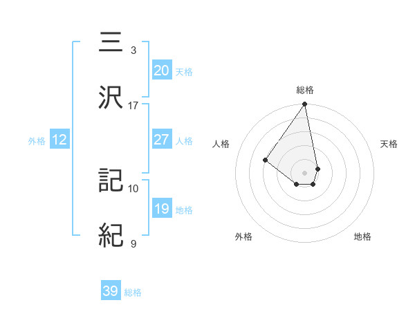 三沢 記紀さんを姓名の画数から五運を鑑定