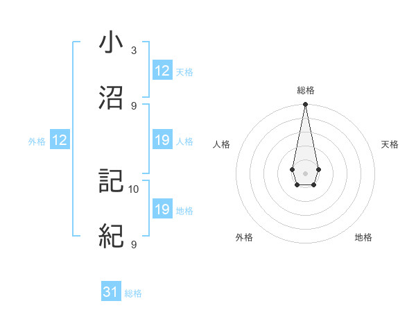 小沼 記紀さんの総格は31画の5点!