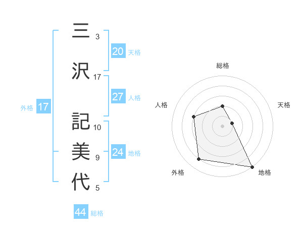 三沢 記美代さんを姓名の画数から五運を鑑定