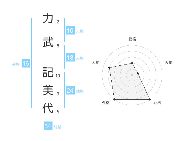力武 記美代さんの総格は34画の2点