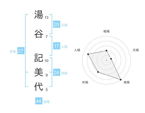湯谷 記美代さんの総格は44画の2点