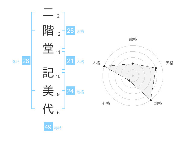 二階堂 記美代さんの総格は49画の2点!