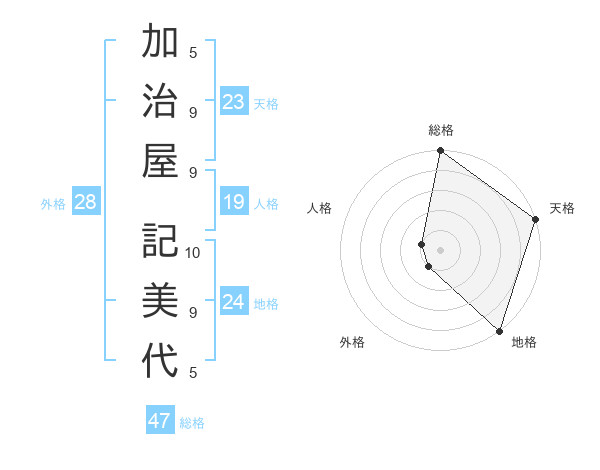加治屋 記美代さんを姓名の画数から五運を鑑定