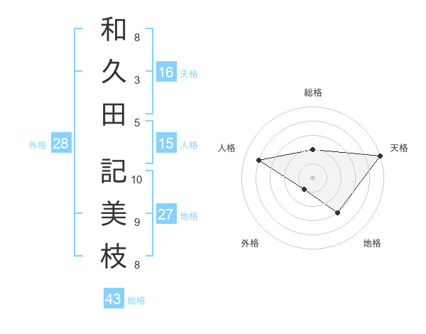 和久田 記美枝さんの総格は43画の2点