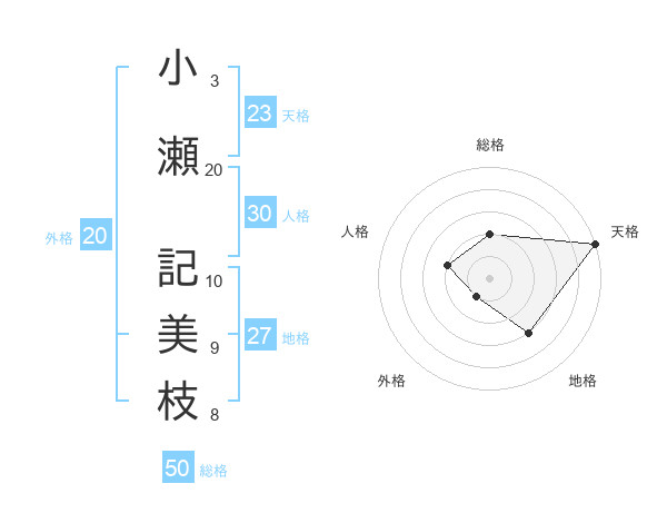 小瀬 記美枝さんを姓名の画数から五運を鑑定