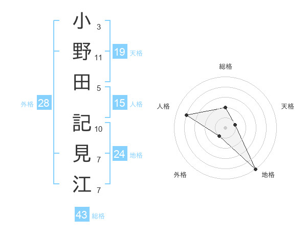 小野田 記見江さんの外格は28画の1点!