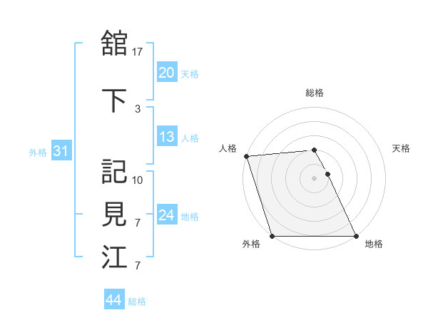 舘下 記見江さんを姓名の画数から五運を鑑定