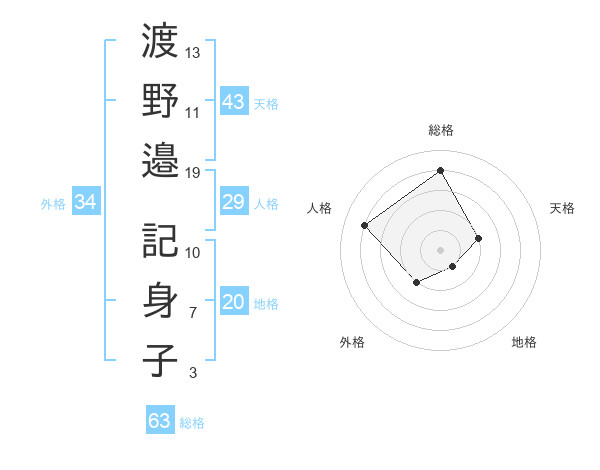 渡野邉 記身子さんを姓名の画数から五運を鑑定