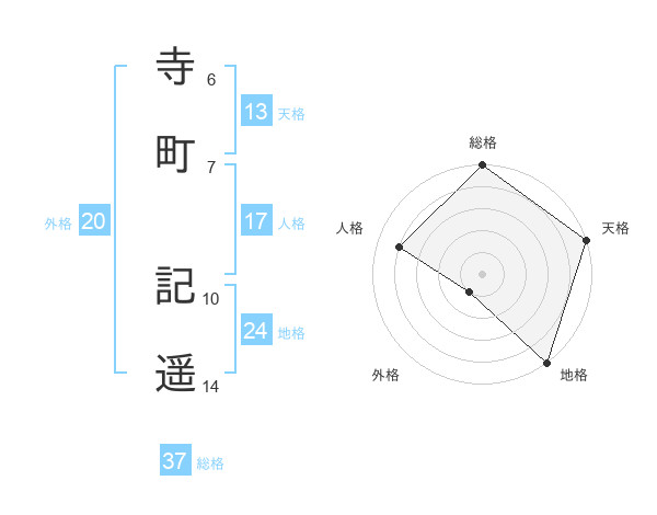 寺町 記遥さんの総格は37画の5点!