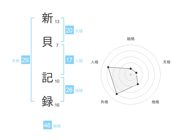 新貝 記録さんの総格は46画の1点!