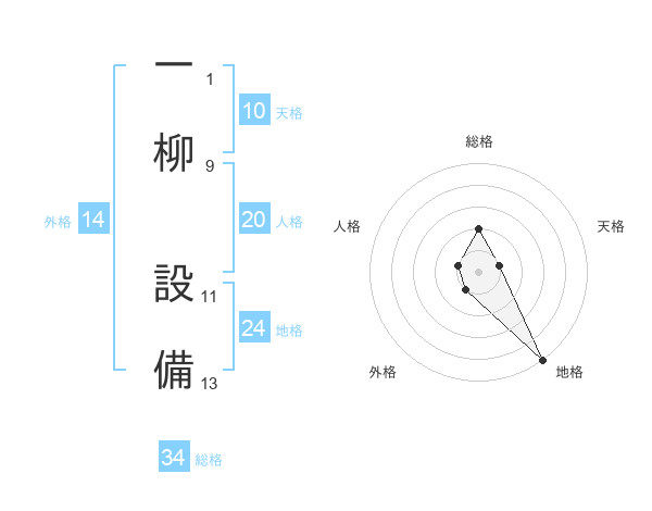 一柳 設備さんの総格は34画の2点!