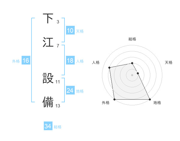 下江 設備さんの総格は34画の2点!