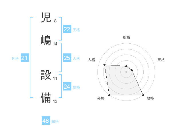 児嶋 設備さんを姓名の画数から五運を鑑定