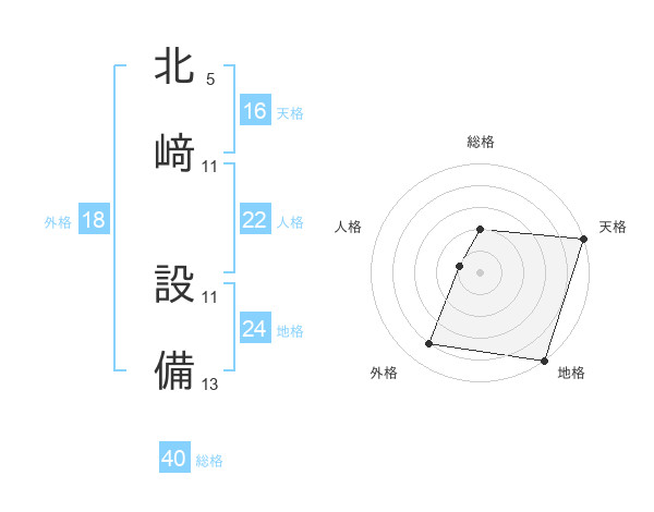 北﨑 設備さんの総格は40画の2点!