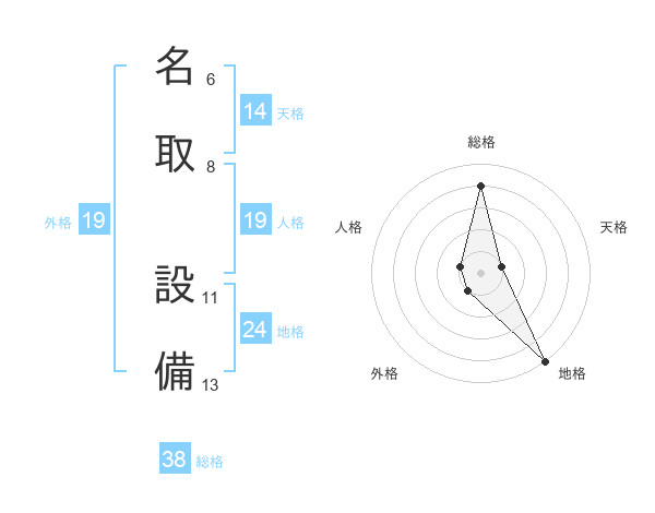 名取 設備さんの総格は38画の4点!