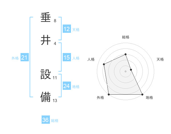 垂井 設備さんの総格は36画の3点!