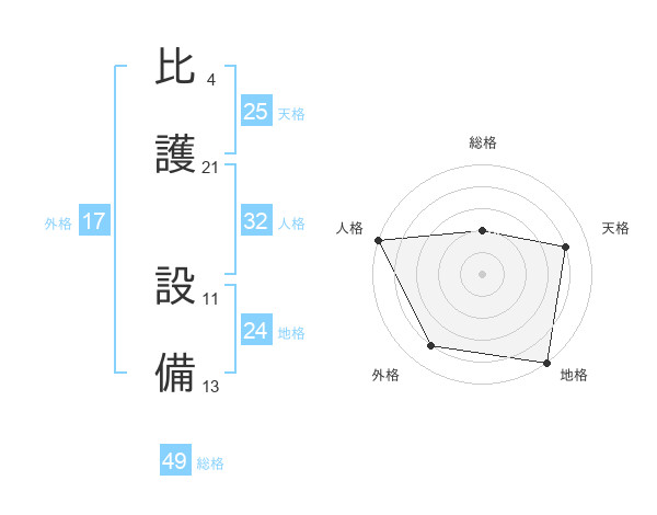 比護 設備さんの総格は49画の2点!