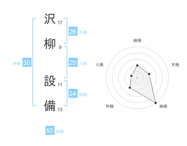 沢柳 設備さんの総格は50画の2点!