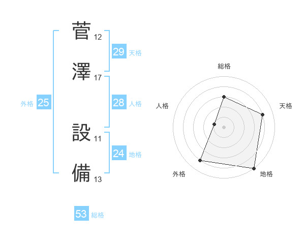 菅澤 設備さんの総格は53画の3点!