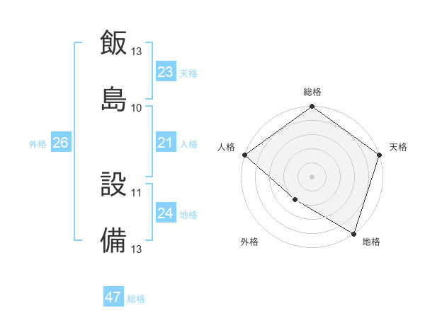 飯島 設備さんの総格は47画の5点!