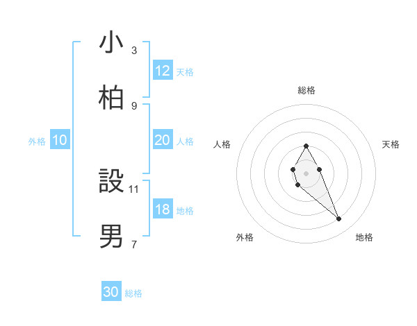 小柏 設男さんの総格は30画の2点!