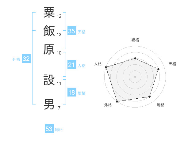 粟飯原 設男さんを姓名の画数から五運を鑑定