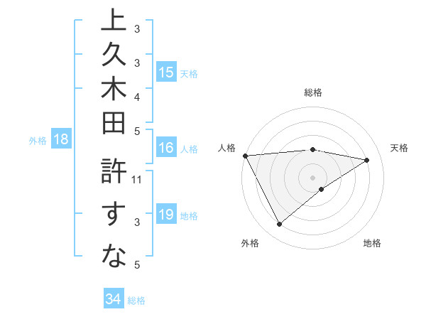 上久木田 許すなさんを姓名の画数から五運を鑑定