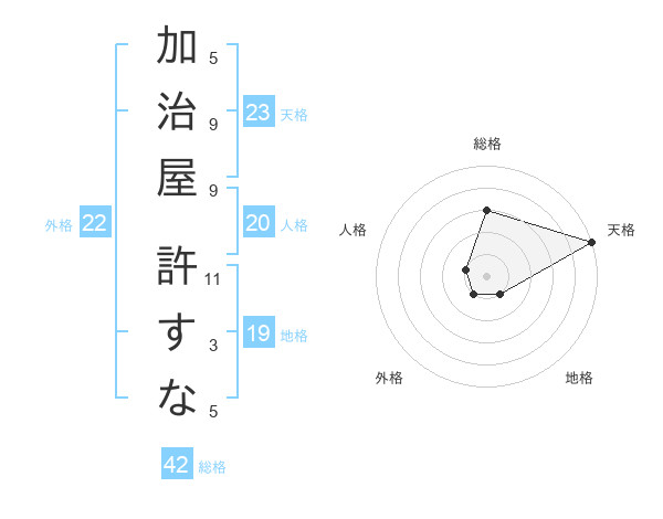 加治屋 許すなさんを姓名の画数から五運を鑑定