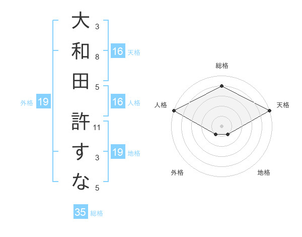 大和田 許すなさんを姓名の画数から五運を鑑定