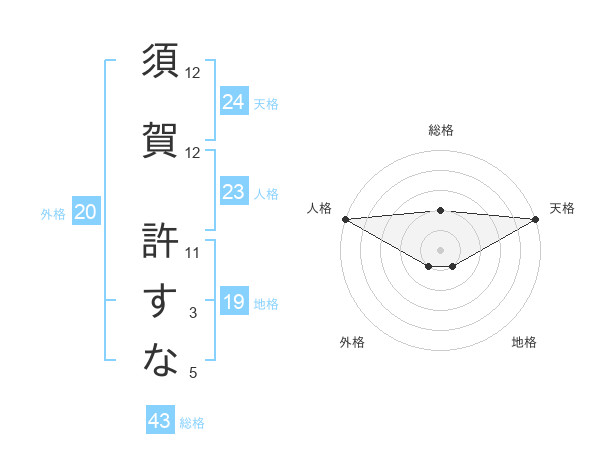 須賀 許すなさんを姓名の画数から五運を鑑定