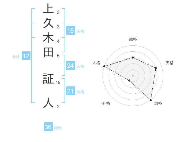 上久木田 証人さんを姓名の画数から五運を鑑定