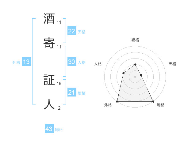 酒寄 証人さんの外格は13画の5点!