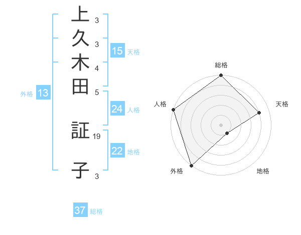 上久木田 証子さんを姓名の画数から五運を鑑定